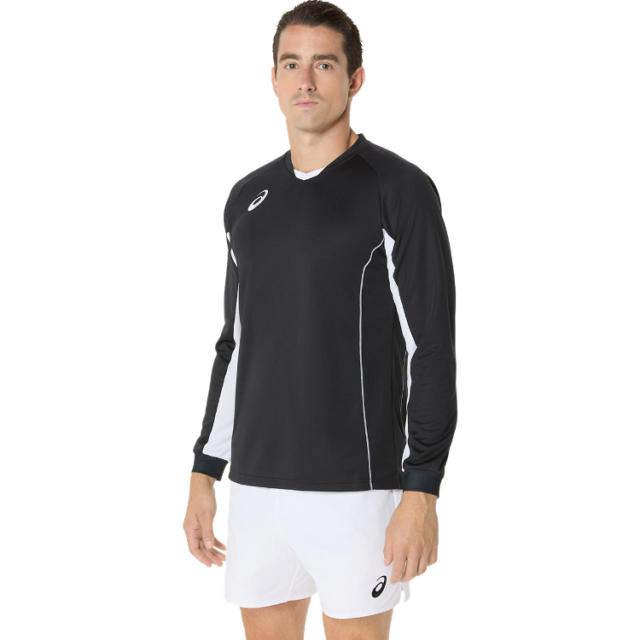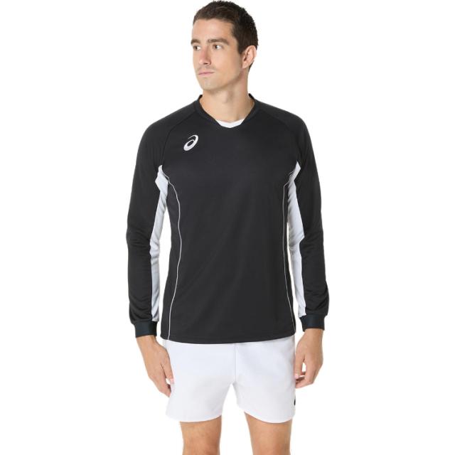 asics アシックス ゲームプラシャツ(長袖) PERFORMANCE BLACK/PINK GLO M 2053A215 1 | スポーツ ウェア トップス Tシャツ 長袖 ロングスリーブ ロンT クルーネック トレーニングウェア トレーニング メンズ