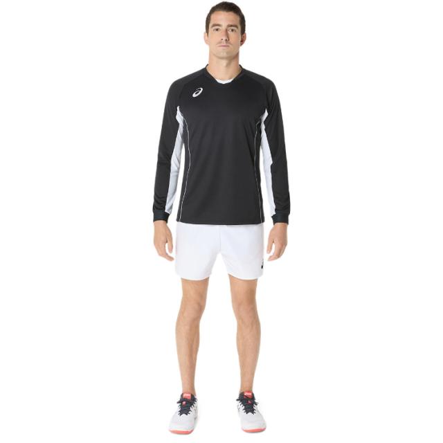 ●右胸のアシックスマークは刺繍で表現、前後身頃に袖口から裾までのステッチがポイントのゲームプラティクス長袖シャツ