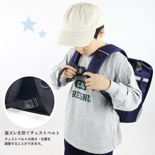 ズレ防止のチェストベルト付き。