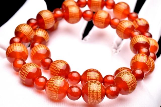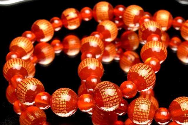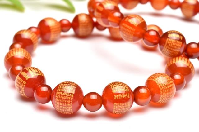 お守りに! カーネリアン 10(丸玉6)mm 般若心経彫刻 ブレスレット 1個売り 金運・仕事運_BG5638-10