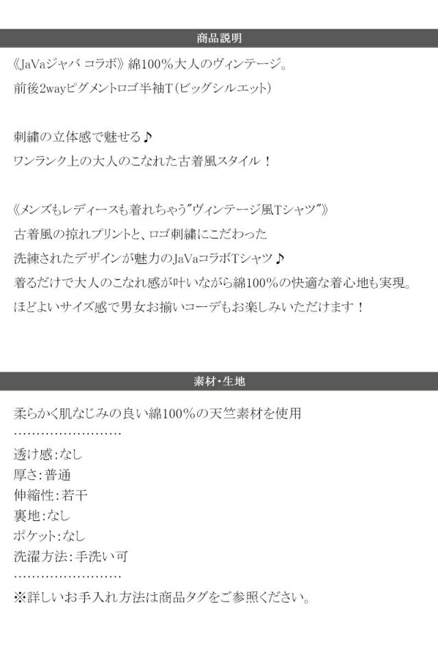 ★《JaVaジャバ コラボ》 綿100%大人のヴィンテージ。前後2wayピグメントロゴ半袖T(ビッグシルエット)★
