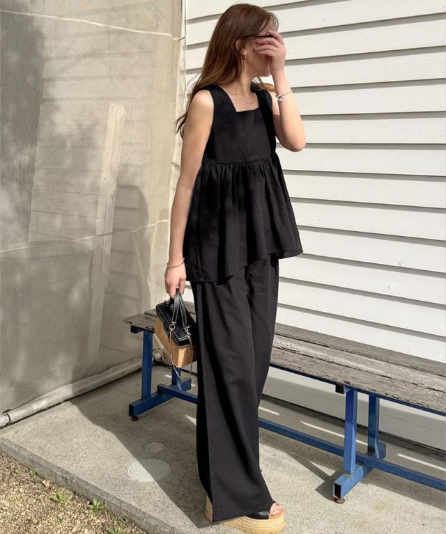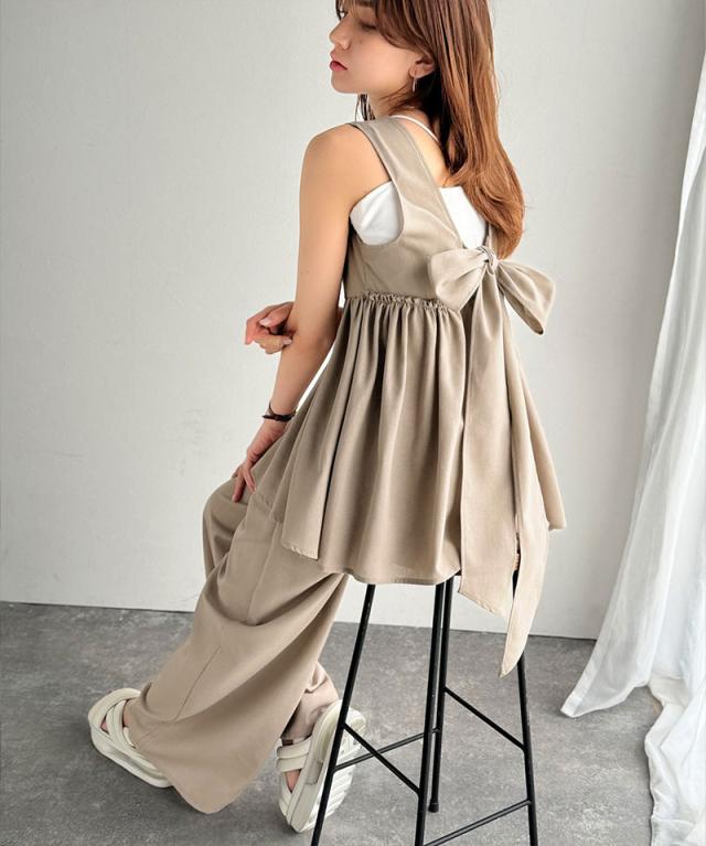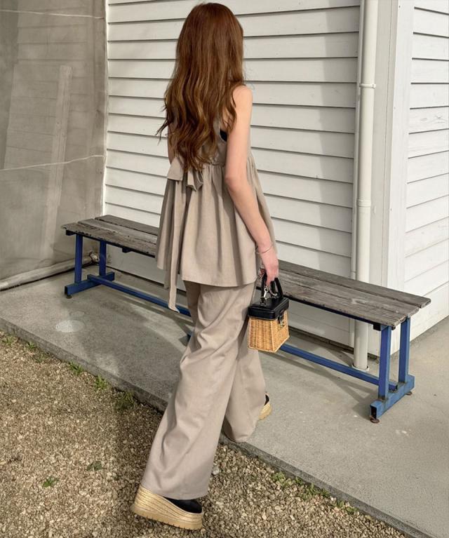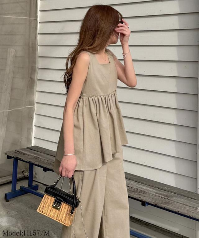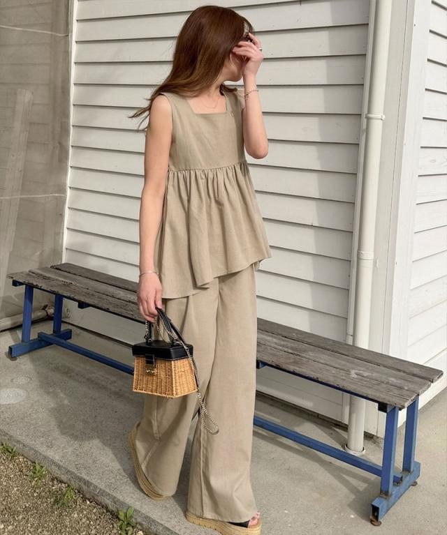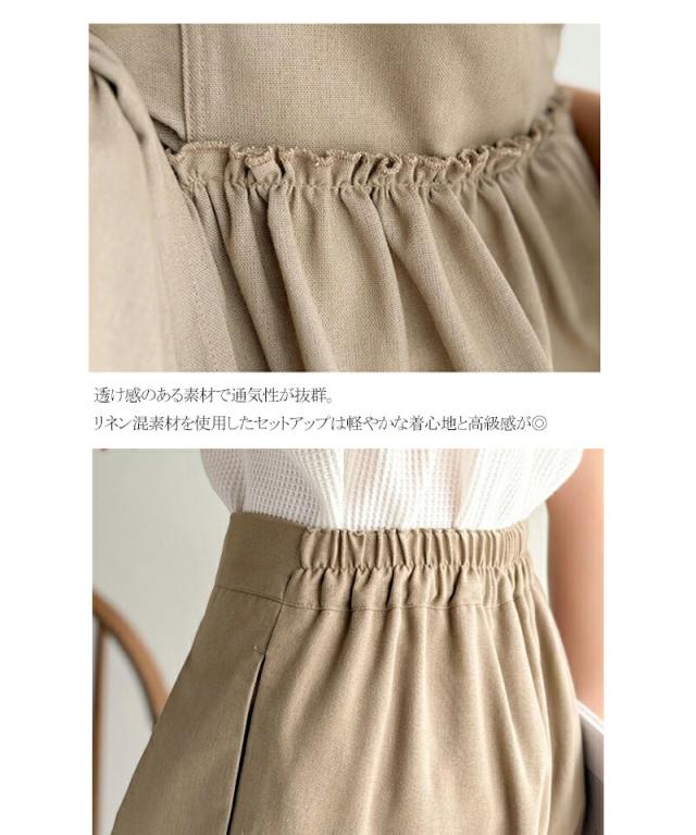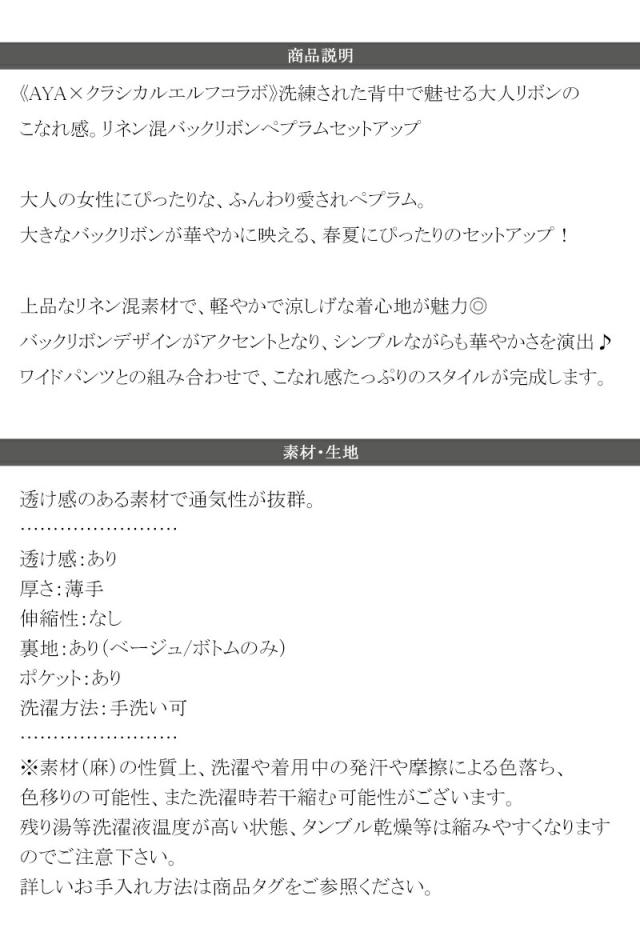 クラシカルエルフ春新作 トップス シャツ レディース ボトムス ワイド パンツ リネン 混 バック リボン ペプラム セットアップ ウエスト ゴム 仕様 大きいサイズ 2026ss ce1015434