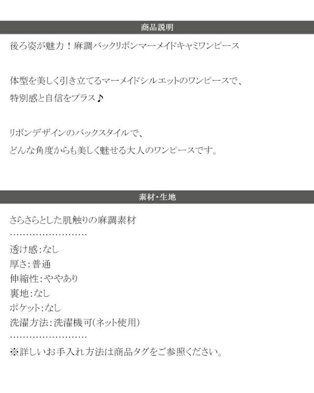 ★後ろ姿が魅力!麻調バックリボンマーメイドキャミワンピース★