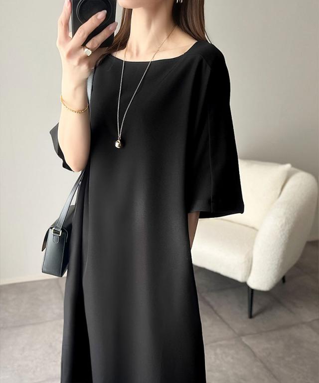 ★洗練された大人のカジュアル♪麻調スクエアネックラグランワンピース★