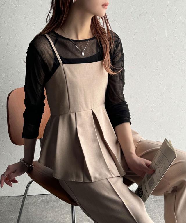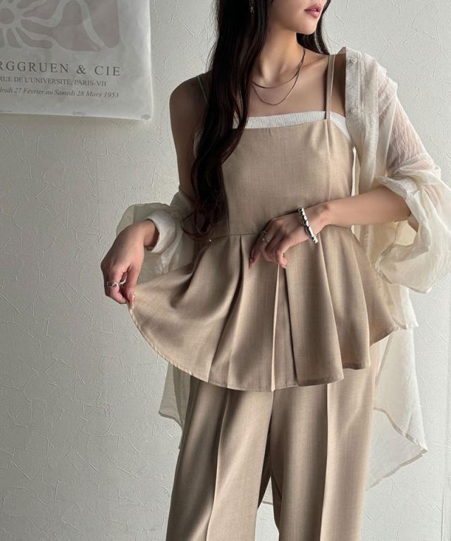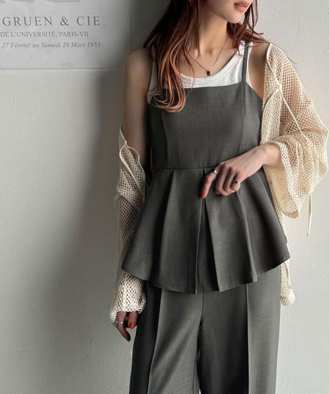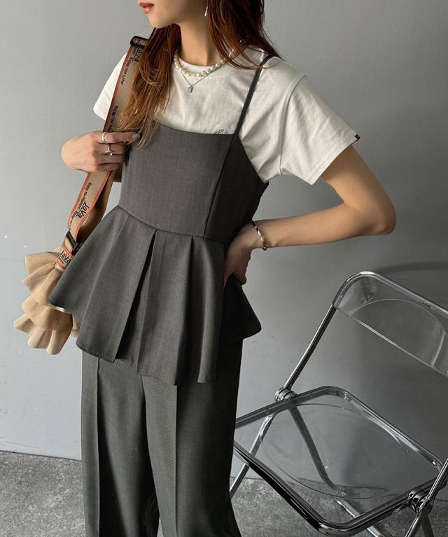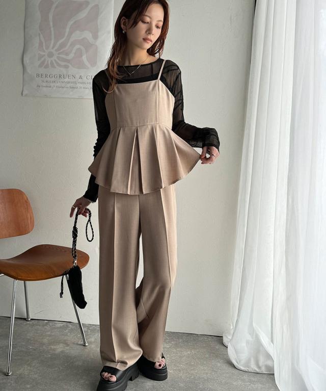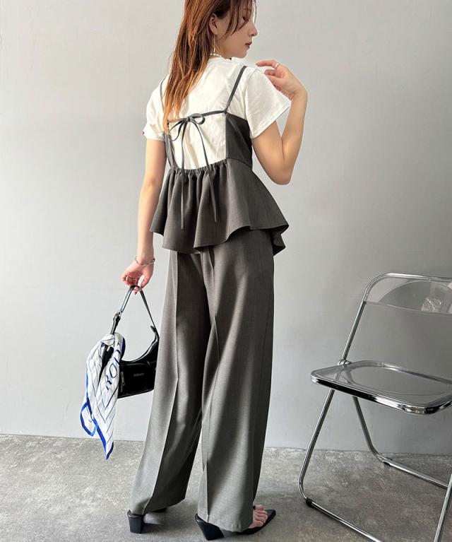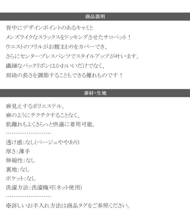 クラシカルエルフ春新作 オールインワン サロペット レディース バックリボン キャミフレア ナチュラル メンズライク フリル 肩紐調節可能 スラックス お腹まわりカバー センタープレス 大きいサイズ 2026ss ce0940241