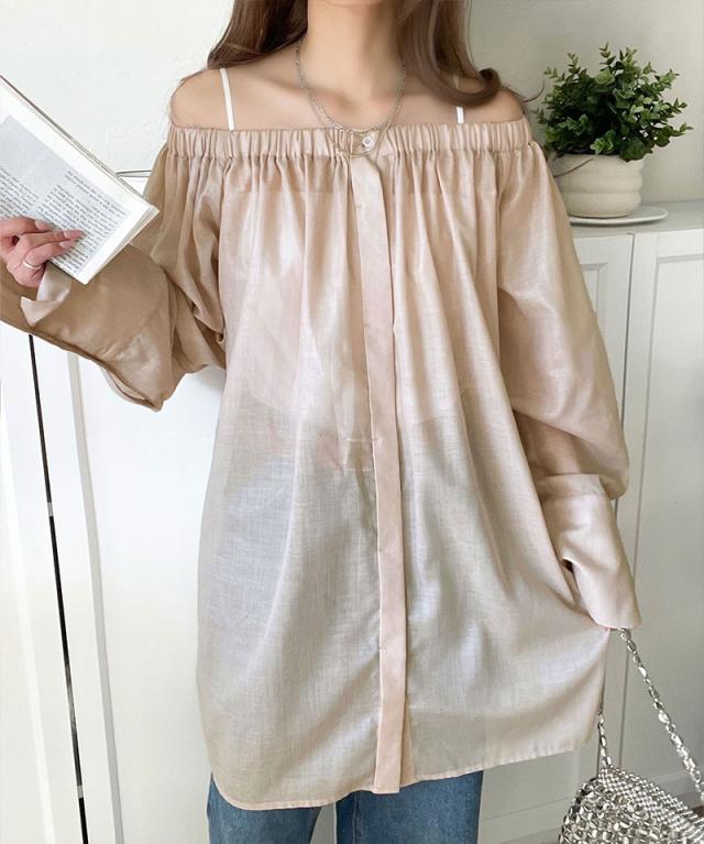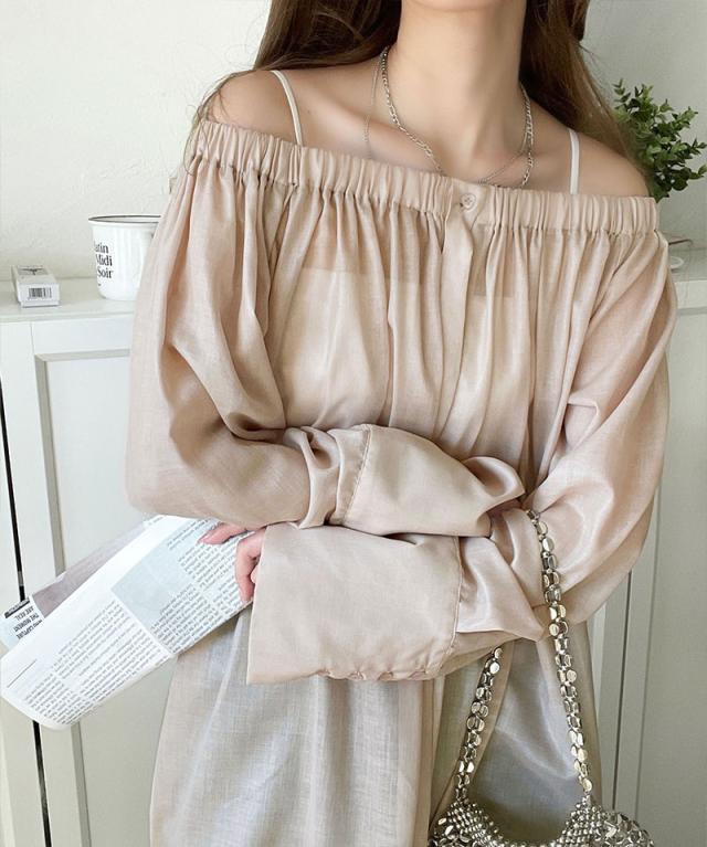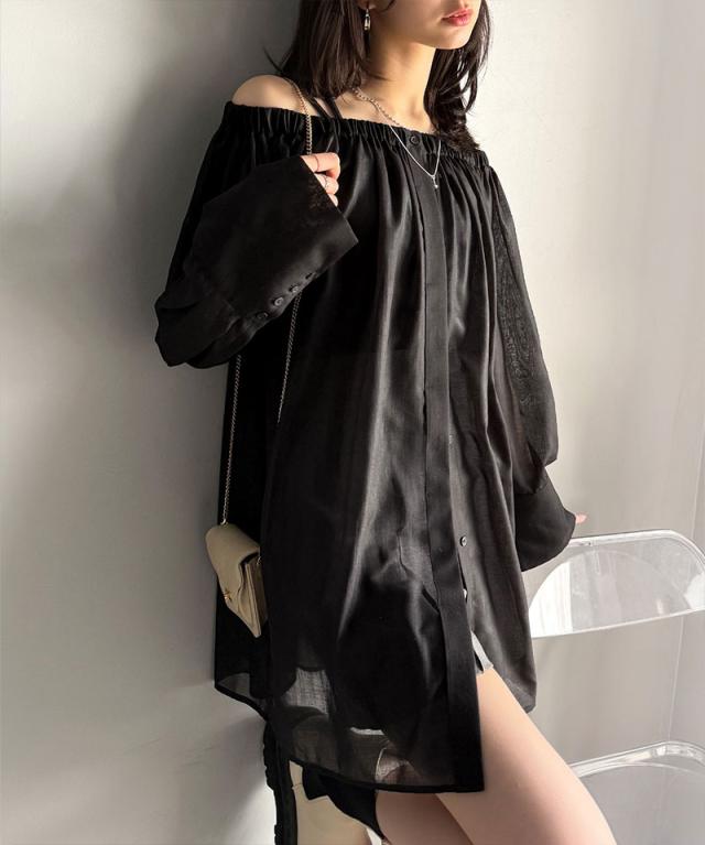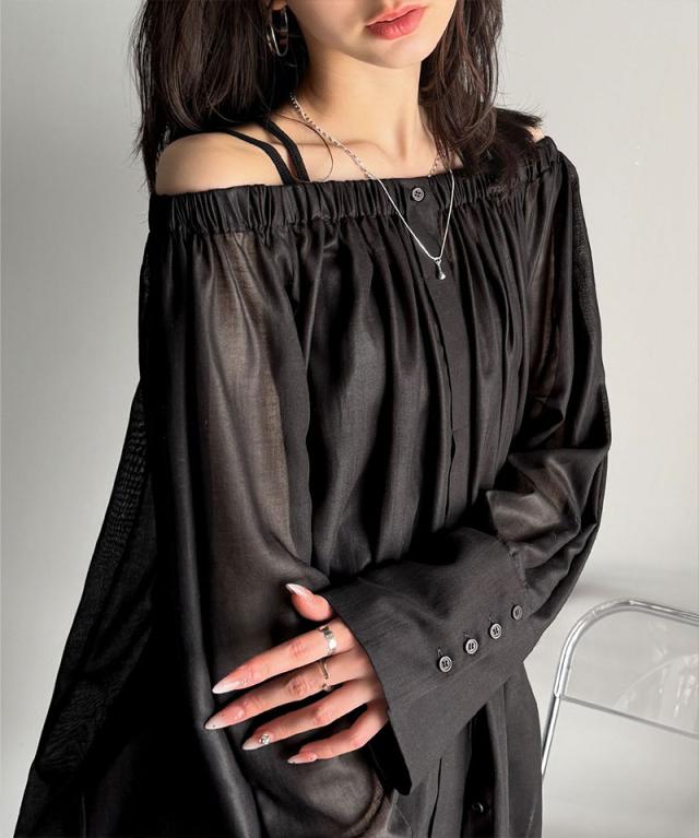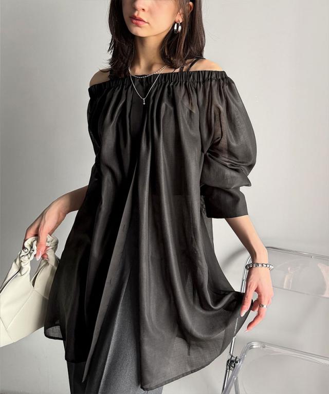 ★着るたび煌めきときめく。2wayオフショルチュニックギャザーシアーシャツ(長袖)★