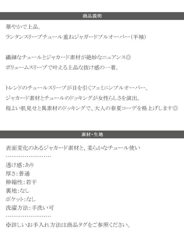 ★華やかで上品。ランタンスリーブチュール重ねジャガードプルオーバー(半袖)★