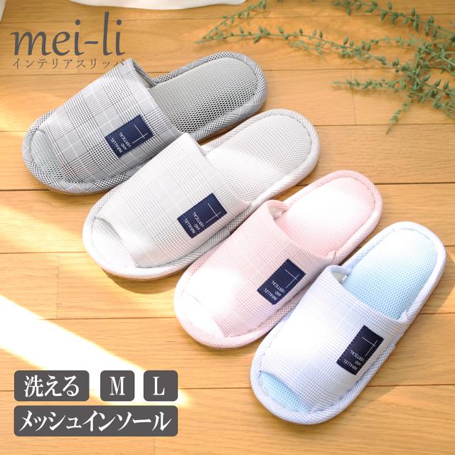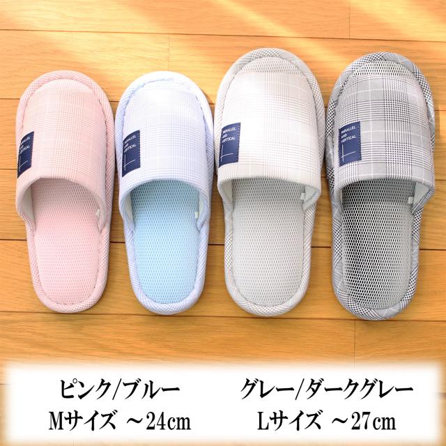 スリッパ 洗える 2足セット メッシュ チェック レディース タグ付き Mサイズ Lサイズ 来客用 ゲスト ルームシューズ 送料無料