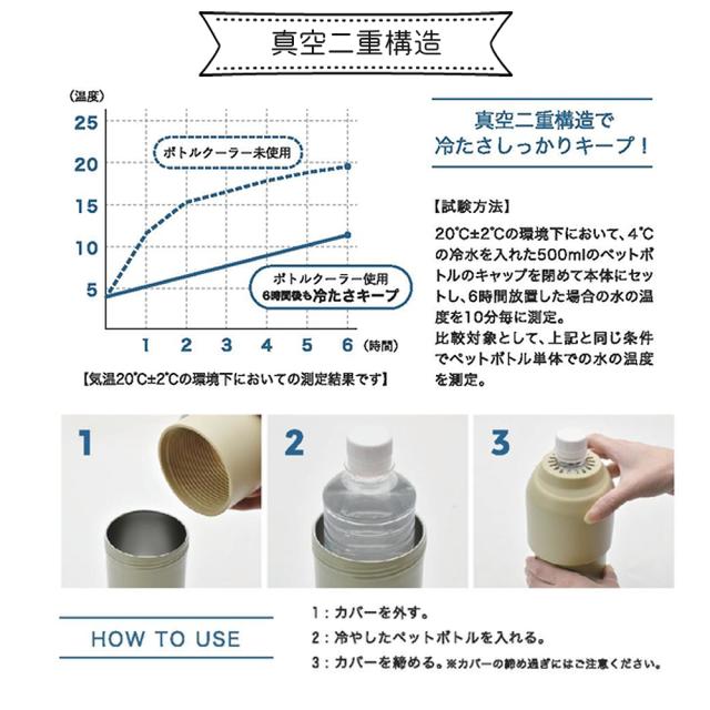 冷えたペットボトルはボトルクーラーに入れておけば、冷たい温度を長時間キープできます。