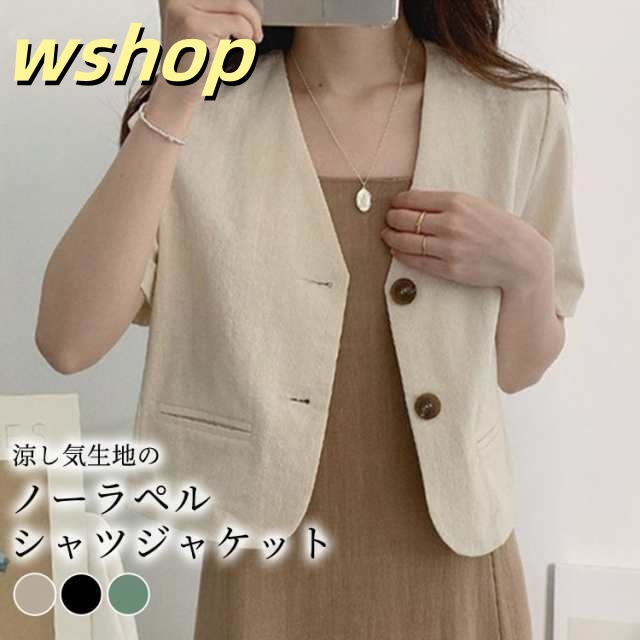 在庫限りの大特価 ギフトにも最適 ノーラペル 】春新作 【wshop 無地 新登場 在庫わずか ライトジャケット 半袖 きれいめ ライトアウター ノーカラー シン ジャケット レディース 春夏 SNS話題 シャツジャケット 送料無料実施中