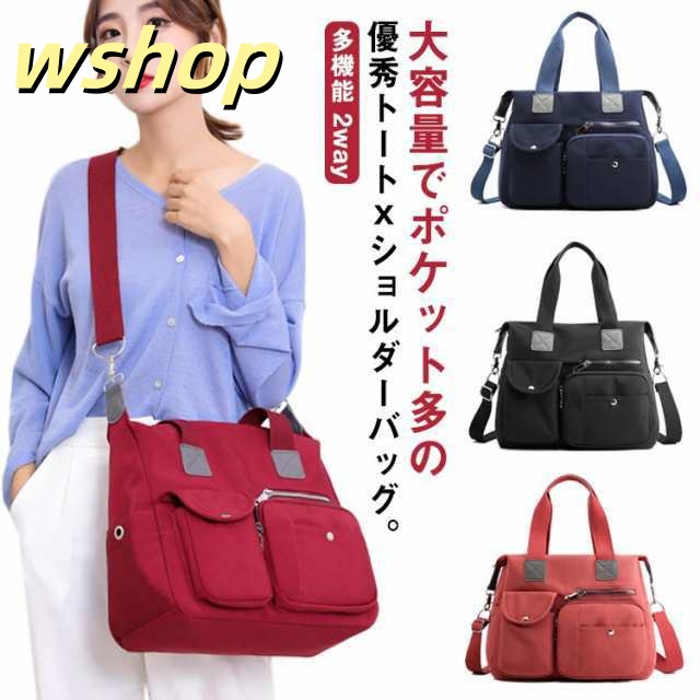 【wshop 】バッグ レディース マザーズバッグ トートバッグ ショルダーバッグ 大容量 2way 多ポケット 撥水 大きめ 通勤 かばん ママバッグ 斜め掛けバッグ 鞄 おしゃれ 軽量 旅行 ママ 多機能 ボストンバッグ ナイロン 通学 スポーツ 送料無料