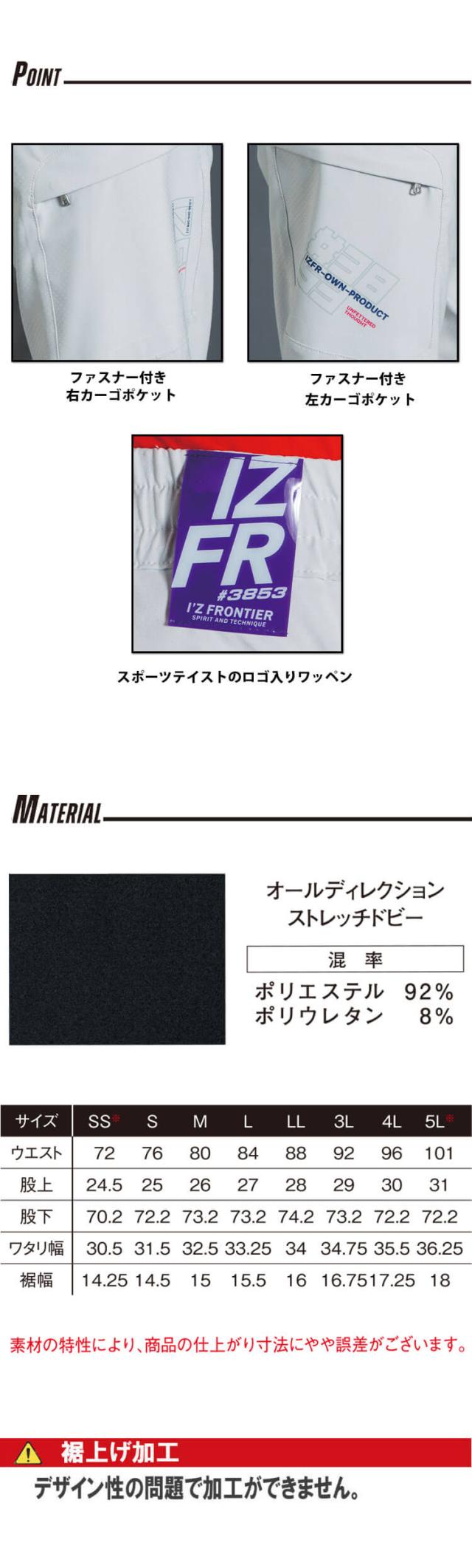 アイズフロンティア IZ FRONTIER 春夏 作業服 吸水速乾A.D.ストレッチジョガーパンツ 3853 2025年春夏新作