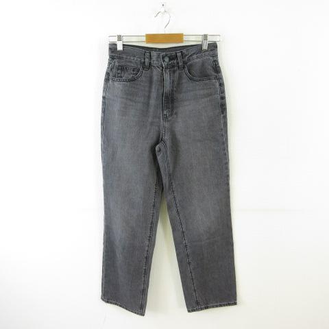 【中古】ジーユー GU ハイライズストレートジーンズ デニムパンツ ロング 黒 S *T92 レディース