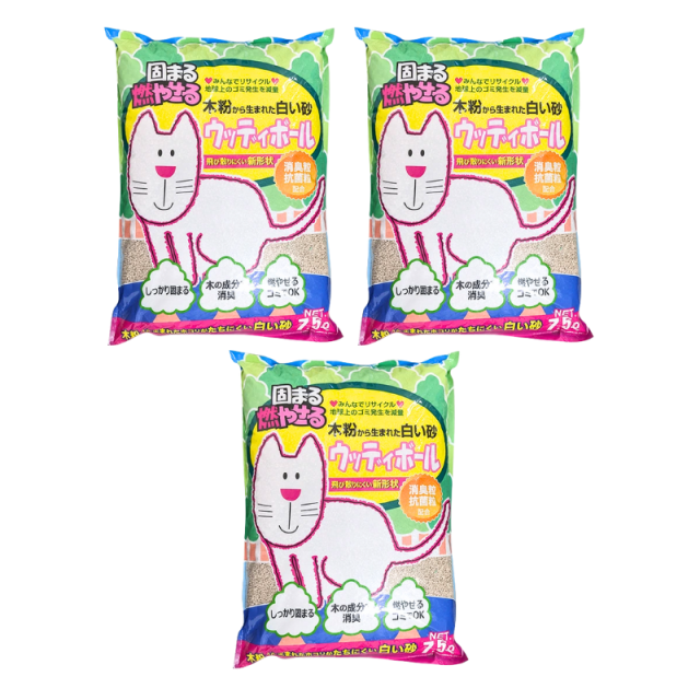 【送料無料】ウッディボール 7.5L×3袋セット 天然素材 大容量 お徳用 まとめ売り まとめ買い おまけ付き 多頭 多頭飼い 猫砂 紙 ネコ砂 ねこ砂 猫の砂 固まる 燃やせる 吸収力 燃えるゴミ おすすめ 人気 軽量 ペット用品 猫用品 猫トイレ