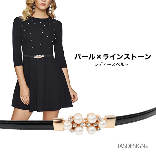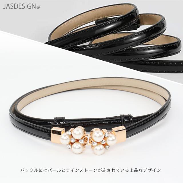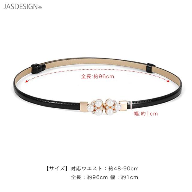 細ベルト レディース 穴なし フォーマル スカートベルト ベルト エナメル ウエストマーク スライドベルト ハイウェスト パール パーティー ウェディング 結婚式 フリーサイズ ドレス ワンピース コーデ サイズ調整可能 ブラック 送料無料 JM-396