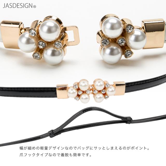 バックルにはパールとラインストーンが施されている上品なデザイン。