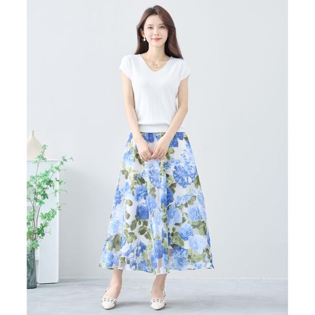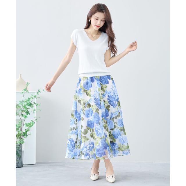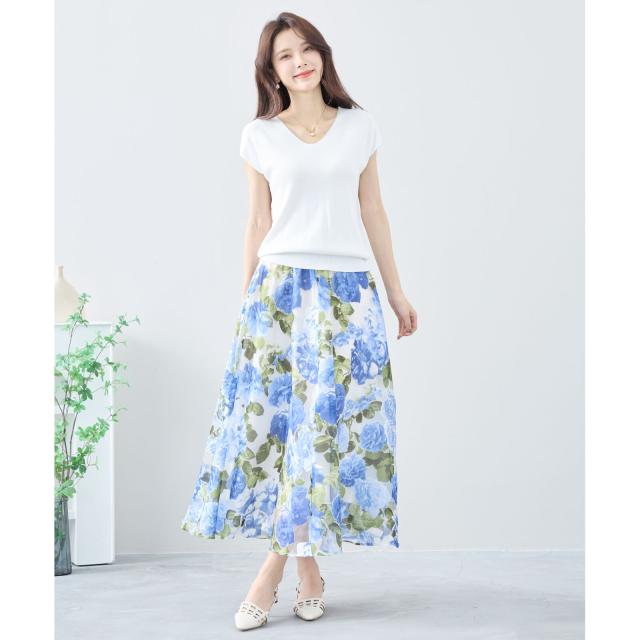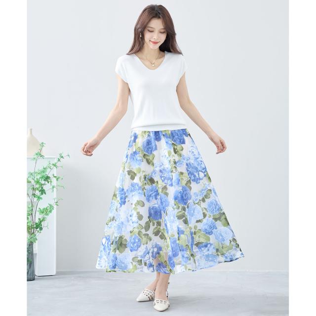 【即納】大花柄Aラインロングスカート フレアスカート ボトムス ウエストゴム フェミニン ナチュラル 春夏 新作