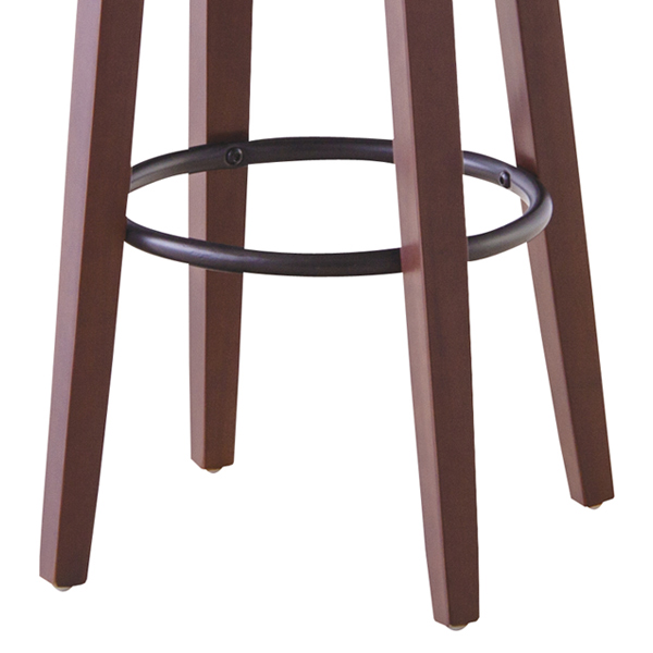 足元のフレームには円形のフットレストがついています。高さのあるカウンターチェアは、座った際に床に足がつかず不安定になりますが、フットレストに足を置くことができるので、安定してご使用頂けます。背が低い方にも安心です。