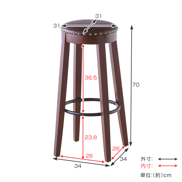 カウンタースツール 高さ70cm スツール ソフトレザー 木製 天然木 椅子 イス チェア ハイスツール 円形 丸型 ( チェアー いす カウンターチェア 丸椅子 木製チェア ハイチェア おしゃれ キッチン バーチェア フットレスト )