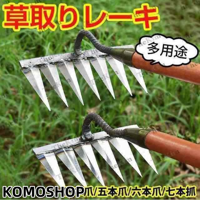 レーキ 草刈りレーキ ガーデンレーキ 熊手 レーキ柄 草取り道具 草削り 雑草取り 雑草抜き 金属製 除草 園芸 多用途 ガーデニング 花壇 田畑 芝生 雑草対策