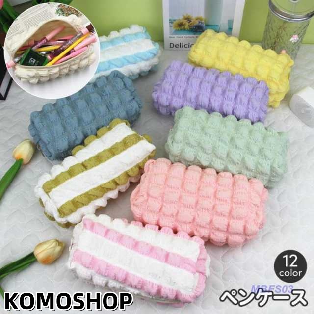 ペンケース 筆箱 筆入れ 小物入れ モコモコ もこもこ ふわふわ 無地 ボーダー 女子 女の子 おしゃれ かわいい スクエア チャック ファスナー 文