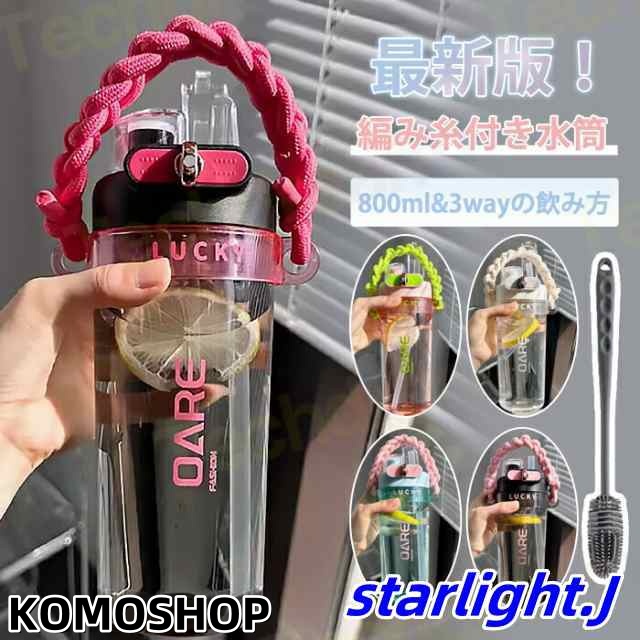 水筒 水筒ストロー付 800ML 編み糸付き 配色 ウォーターボトル タイムマーカー 直飲み ストロー飲み 携帯便利 漏れ防止 子供 キッズ オシャレ 大容量