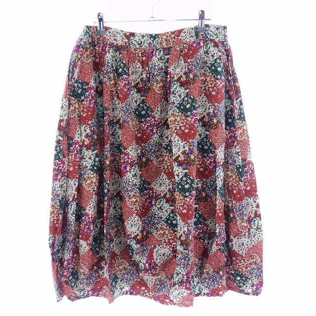 【中古】チチカカ titicaca MUCHO フレアスカート ミモレ丈 ウエストゴム 薄手 コットン 総柄 15 赤 レディース