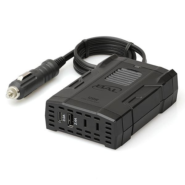 お車のアクセサリーソケットの電源(DC12V)を家庭用電源(AC100V)やUSB電源(DC5V)に変換しスマートフォンやタブレットPCへ電源供給ができます。
