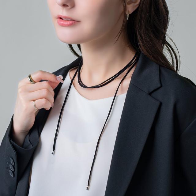 色々な付け方が楽しめるブラックコードのロングチョーカー。