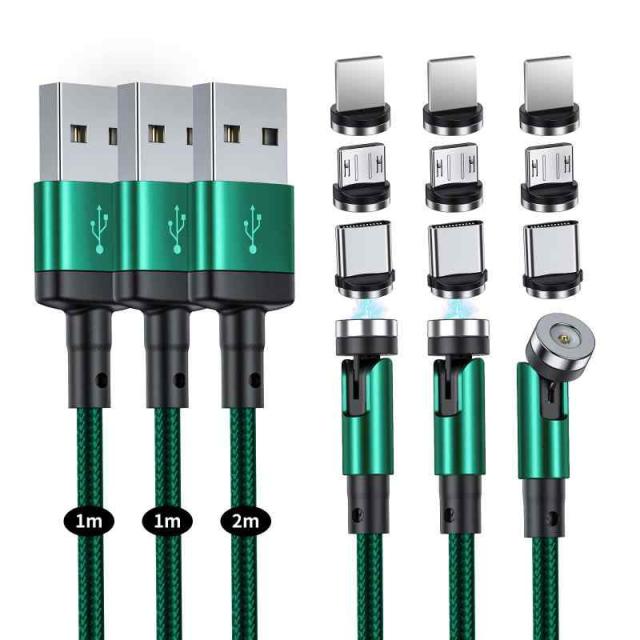 マグネット 充電ケーブル SUNTAIHO 3-in-1 USBケーブル 急速充電 360度+180度回転 3本 (グリーン)