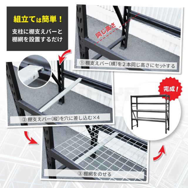 | 耐荷重 | 全体 1600kg/各棚 均等400kg |