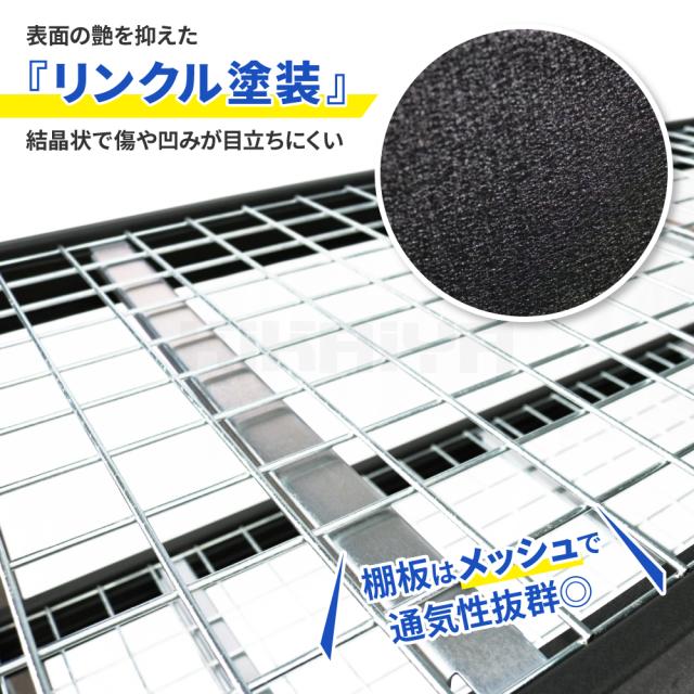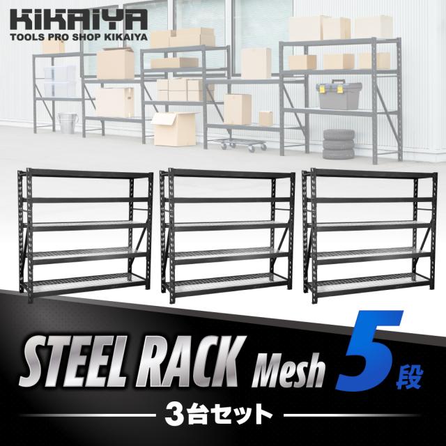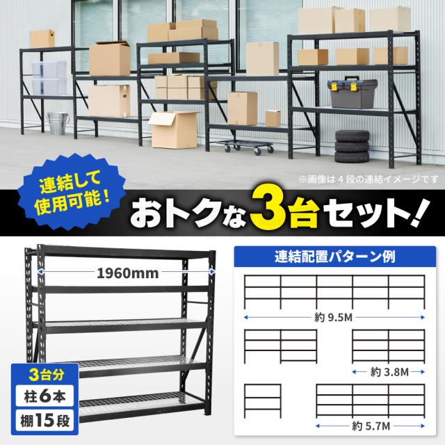 【3台セット】 スチールラック 5段 ボルトレス ブラック ワイド幅 業務用 収納棚 中量棚 メタルラック 耐久性あり 350kg 頑丈 高強度 幅196×奥行61.5×高さ183cm KIKAIYA