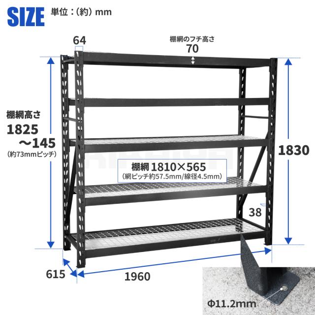 | 耐荷重 | 全体 1750kg/各棚 均等350kg |
