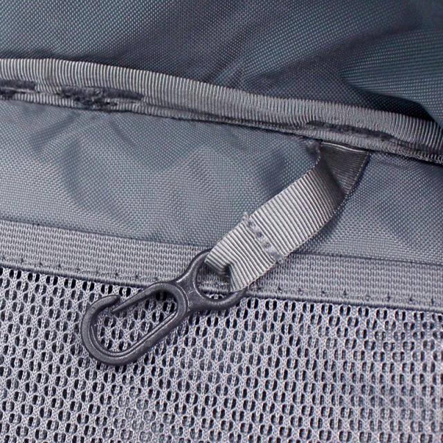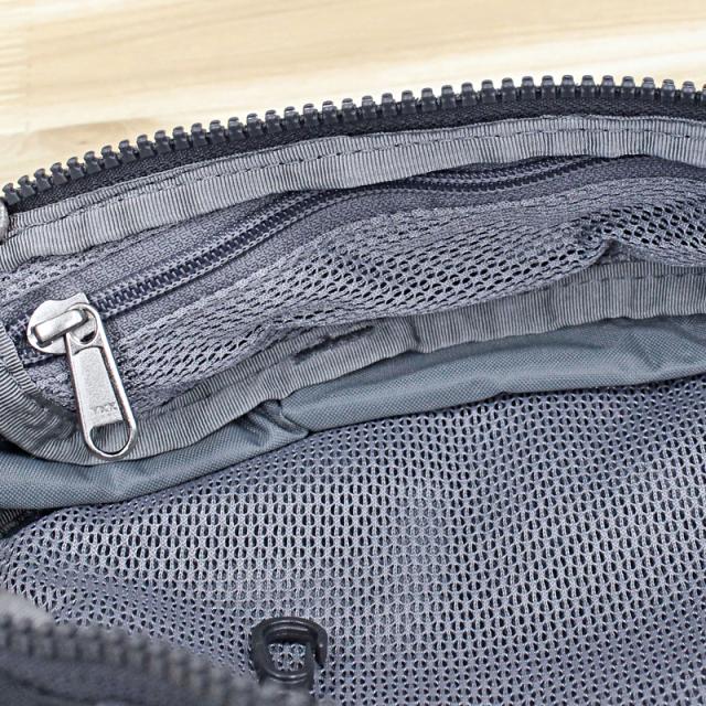 内側にはファスナーポケットとキーフック付きメッシュポケットを装備