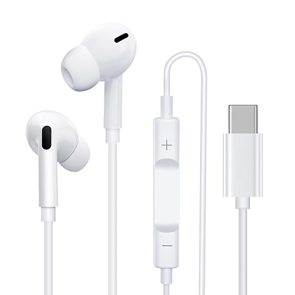 Type C イヤホン 有線 HiFi TypeCイヤホン USBC イヤホン 重低音 type-c クリア通話 ノイズ低減 装着 快適 マイク付き 通話音量調節 コンパクト 適用 iPhone 15 / Pixel / Xperia / Galaxy / iPadなど (ホワイト)