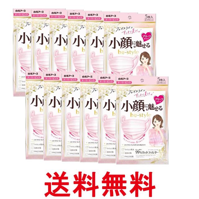 12個セット 白元アース ビースタイル マスク プリーツタイプ ふつうサイズ 5枚入 ドーリーピンク小顔 送料無料