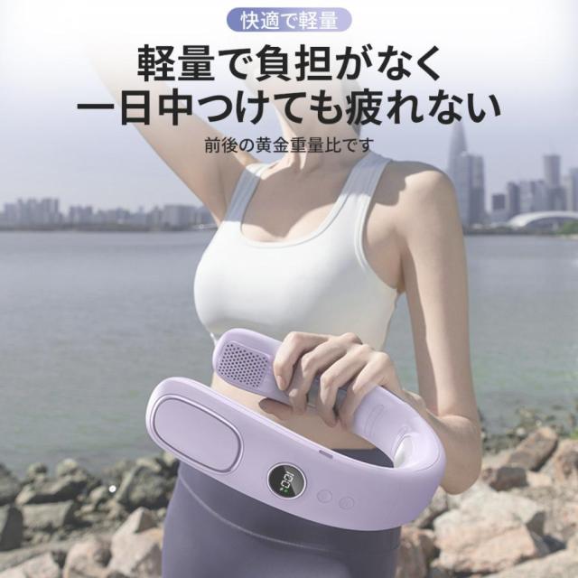 大容量の6000mAhバッテリーを搭載しています。従来の3000mAhモデルよりも2倍の電池量を持っているため、長時間の使用でも安心して使えます。 5段階の風量調整が可能です。【超静 モーター採 &25db】ネッククーラーの静音性がアップしました。ファンモーターに求められるすべての条件を満たした理想的な静 モータです. 品質のブラシレスモーターで騒 を 幅に低減しました。 効率・低騒 (たった20db)によ り図書館、家事、スポーツ観戦、電車などの屋内、屋外で、場所を選ばずに使えます。【羽根なし設計】羽根なし結構なので、髪を巻き込まなく、髪の長い女性にも安心です。ネックファンは、気になる騒音を最小にノウハウを活かした静音ファンを採用することにより、強力な風量を確保しながら騒音を最小限に抑えます。静音設計なので、図書館で使用できるほどの音なのでお子さんの勉強中に使用しても集中力を落としません。仕事で他人に迷惑をかけることはない。【ハイクオリティデザイン】2025年の最新のネックファンであるデザインは、手持ちのわずらわしさから解放されます、両手を解放して心地よい風を顔に当てられる。