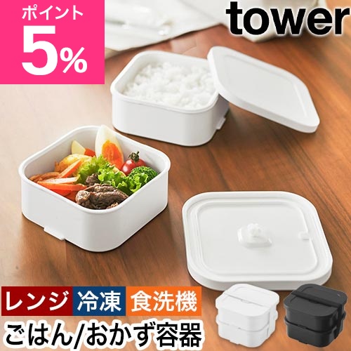 山崎実業 冷凍ごはん容器&バルブ付き密閉ランチボックスセット タワー 4903208013659 4903208013666 冷凍ご飯容器 冷凍保存容器 保存容器 ストッカー フードコンテナー 耐熱 弁当箱 冷凍 電子レンジ対応 食洗機対応 tower yamazaki タワーシリーズ