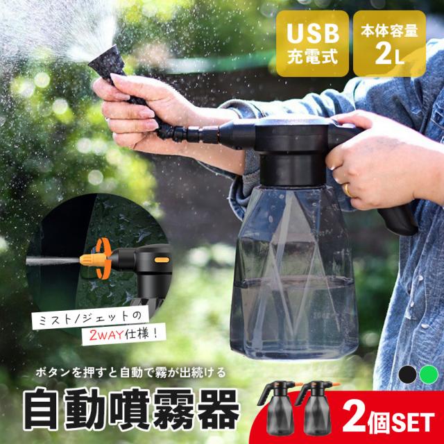 噴霧器 充電式 電動噴霧器 充電式噴霧器 2個セット 電動 除草剤 散布 薬剤 消毒 雑草駆除 害虫駆除 水やり 液肥 コードレス 家庭菜園 ガーデニング 園芸用品 電動式噴霧器 2L 小型噴霧器 電気噴霧器 霧吹き じょうろ USB充電式 電動スプレー