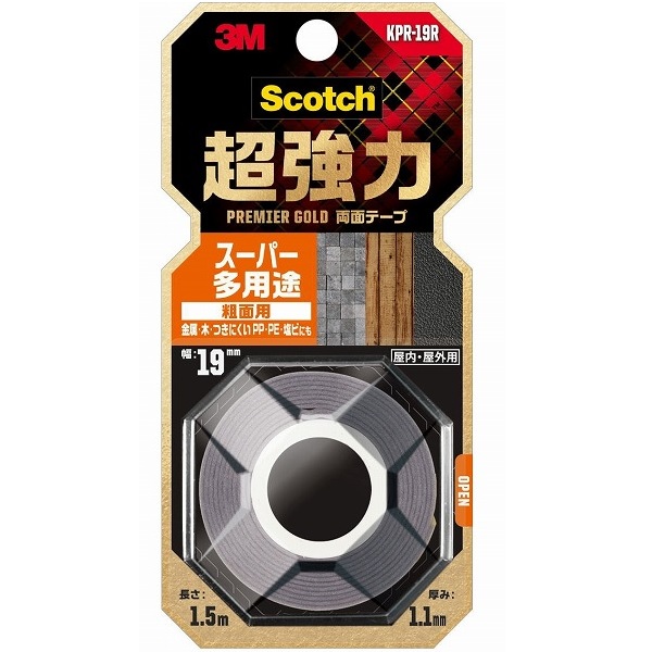 3M(スリーエム) Scotch(スコッチ) 超強力両面テープ プレミアゴールド スーパー多用途 粗面用 幅19mm長さ1.5m KPR-19R