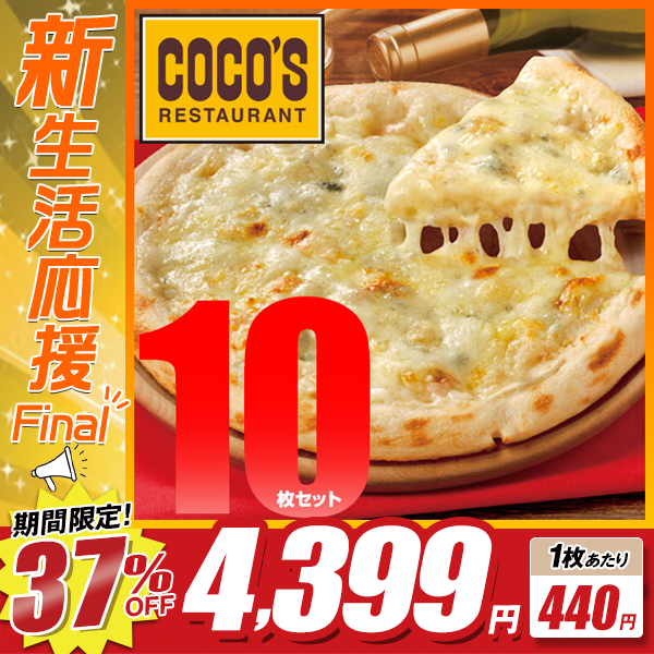 1枚440円!! 37%off!! 新生活応援FINAL! ココス監修 4種チーズのハーモニー ピッツァ クワトロフォルマッジ 10枚セット【送料無料】【冷凍(クール)】