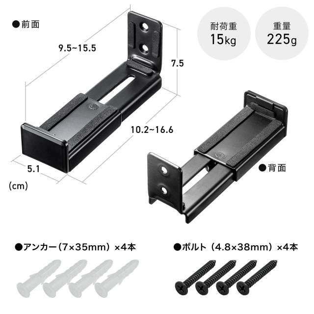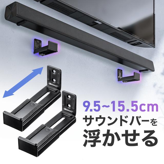 サウンドバー壁掛けスタンド 耐荷重15kg 長さ 奥行 調整可能 取り付け金具 ブラケット 汎用 2個セット[100-SPSTN10]