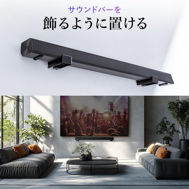 ●サウンドバーを壁に取り付けられる壁掛けサウンドバースタンドです。●サウンドバーを飾るように設置でき、壁掛けテレビと一体化させることで違和感なく設置できます。