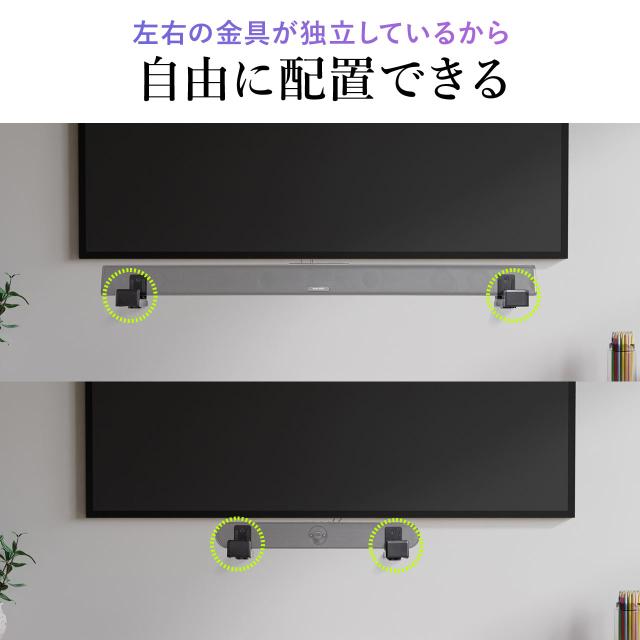 ●左右の金具が独立しており、ご使用のサウンドバーにピッタリ合わせることができます。