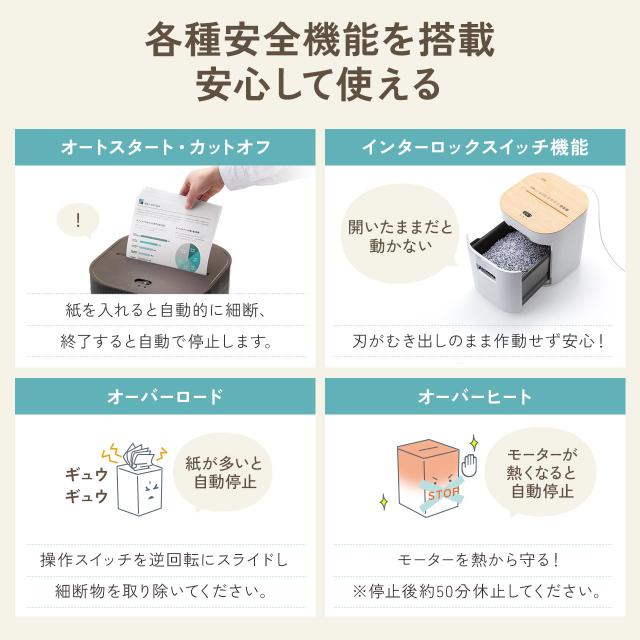 ●モーター保護機能により、連続運転(10分以上)を続けたり、書類をかみこんだまま放置すると自動的に停止します。約50分後に再び細断可能になります。