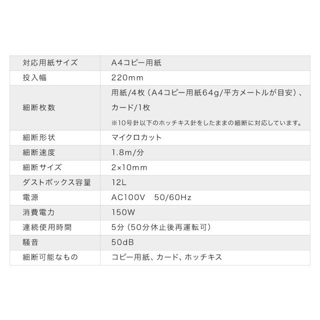 ■定格細断枚数:紙/4枚 ※A4コピー用紙64g/平方メートルが目安です。