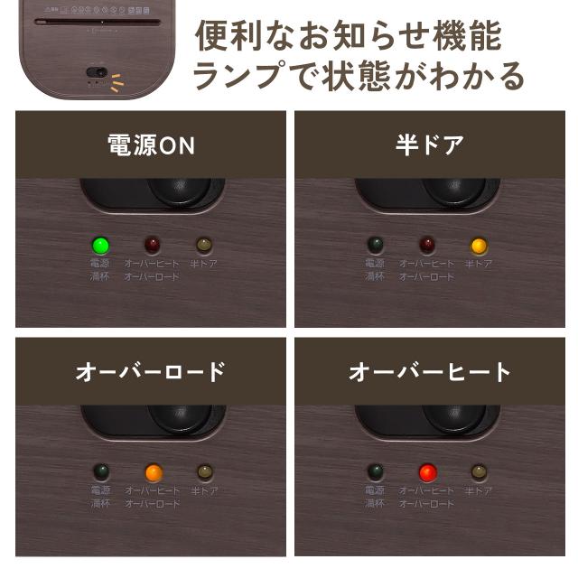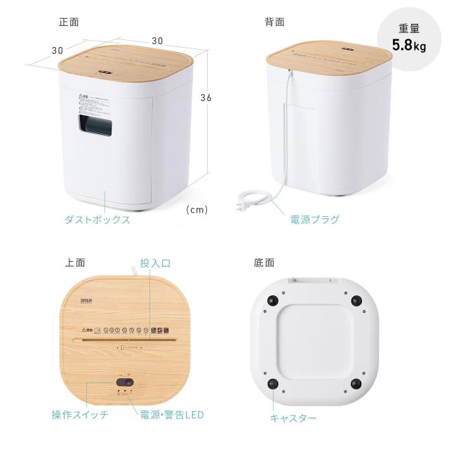 ●コンパクトサイズの電動シュレッダーです。●筐体はブラックカラー、上蓋部分にブラウンの木目調デザインを施したおしゃれなシュレッダーです。