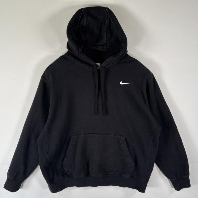 古着 ナイキ NIKE パーカー スウェット フーディ プルオーバー ワンポイントロゴ刺繍 大きいサイズ XL ブラック メンズ