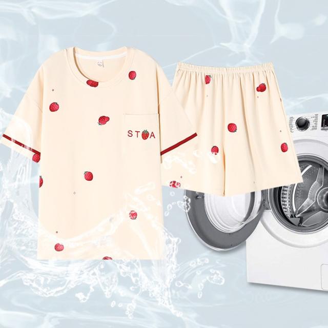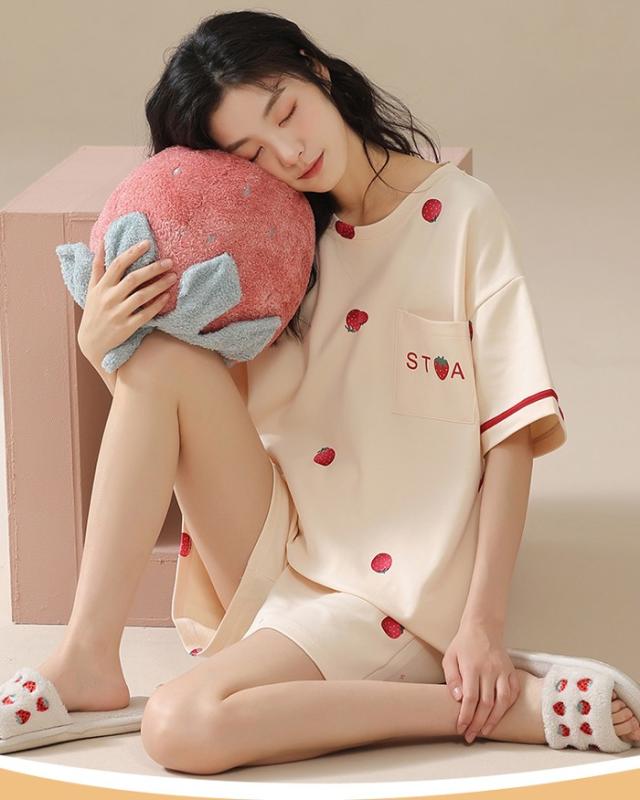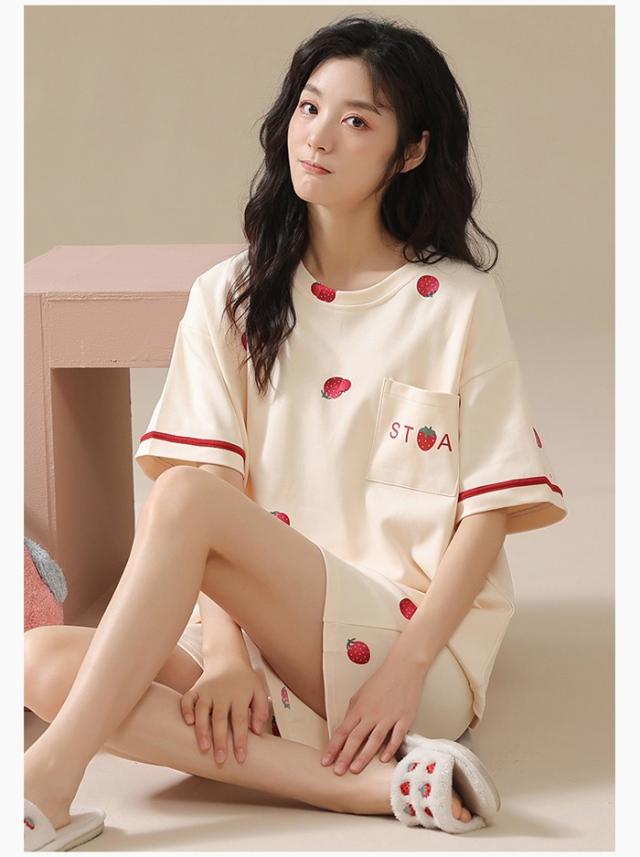 パジャマ レディース 夏用 いちご柄 半袖 綿 上下セット 2点セット 部屋着 寝間着 ルームウェア 大きいサイズ ぽっちゃり 夏用 秋用 可愛い かわいい 薄手 サマーパジャマ ゆったり 女性 リラックス おしゃれ 誕生日 ギフト 結婚祝い プレゼント ベージュ dh133zbzbm5