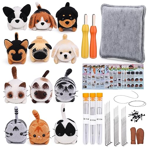 ・ニードルフェルトスターターキット:犬と猫の製作材料バッグ12個、説明書12個、フェルトニードル12個、指サック1組、木製フェルトツール2個、フェルトマット1個、ニードルボトル3個、敷物1個が付属します。 。 羊毛ニードルフェルトが好きなお母さん、お子様、お友達への素敵なDIYクラフトセットになります